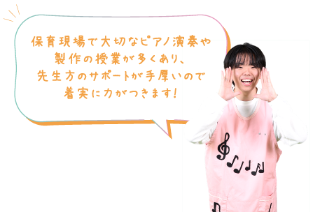 見学実習や運動会やクリスマス会など行事実習の経験を通して、校内にいながら現場で求められる保育力を養うことができます。